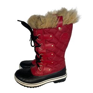 Sorel Tofino Waterproof Boots Fur Trim Red Size 7