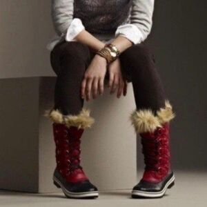 Sorel Tofino Red Waterproof Boots Fur Trim