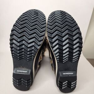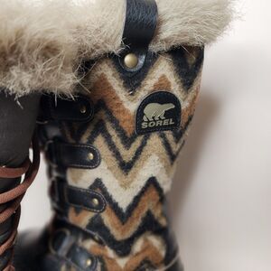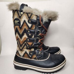 Sorel Tofino Winter Boots Waterproof Black Tan Chevron Womens Size 8 Faux Fur