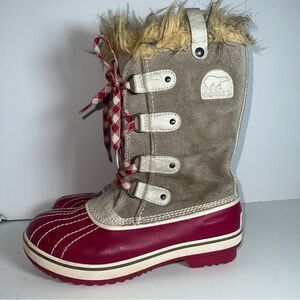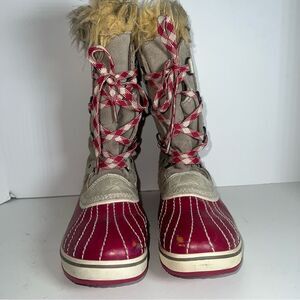 Sorel Tofino Winter Lined Boots Red Women SZ 5 NY1839-223 Brindle & Oyster Faux