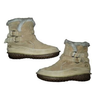Sorel Women's Size 8 Tootega NL1460-261 Tan Suede Furry Lined Insulated Ankle Winter Boots.