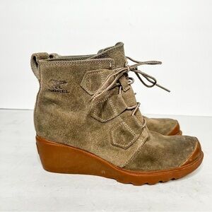 Sorel Toronto Waterproof Lace Up Wedge Boots Tan Suede Size 5 Women’s