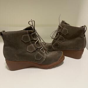 Sorel Toronto Wedge Suede Olive Green Booties Size 9