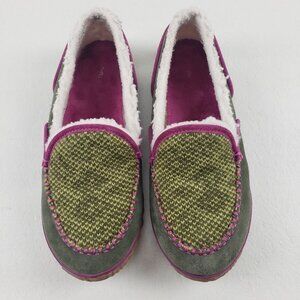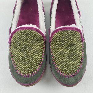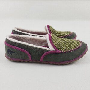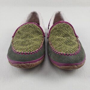 Sorel Tremblant Blanket Moccasin Slipper Womens 11 Green Leather Sherpa Shoe