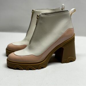 Sorel Waterproof Brex Heeled Chalk/Peach Women Chelsea Leather Zip Booties 8