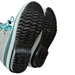 Sorel Insulated Duck boots. Gray, black, and blue details.