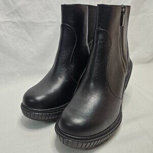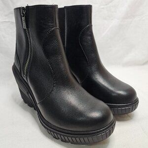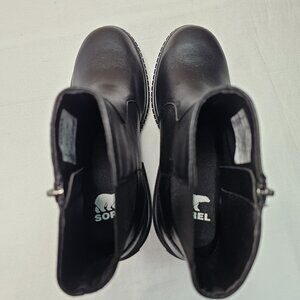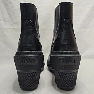 Sorel Wedge Heel Side Zip Black Leather Waterproof Boots Women's Size 8- NEW