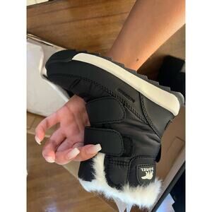 Sorel Whitney II Strap Faux Fur Black Puffer Boots Size 10