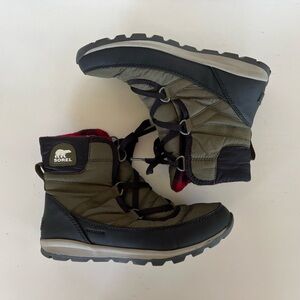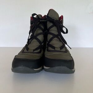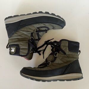 Sorel Whitney Short Lace Up Snow Boots in Olive Green, size 8