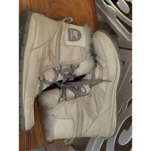 Sorel Whitney short lace up snow boot ski boots sz 9 vanilla white