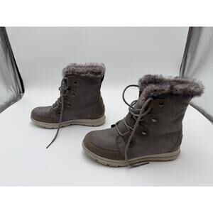 Sorel Winter Boots Womens 7.5 Explorer Joan Gray Suede Faux Fur NL3039-052