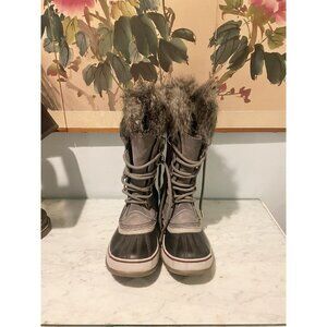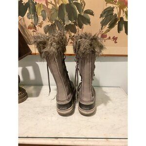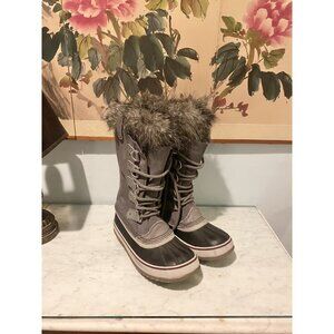 Sorel Winter Carnival Boots Womens Size 7 Gray Faux Fur Waterproof Snow NL2429-052
