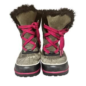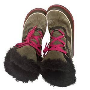 Sorel Winter Carnival Snow Boots Women’s 6 Olive Green Suede Fur Waterproof