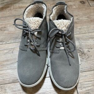 Sorel boots in charcoal suede. Features cozy fleece lining. Perfect for cold weather.