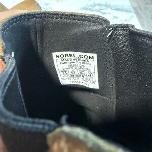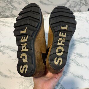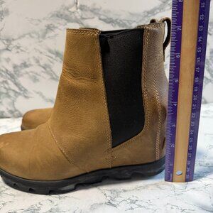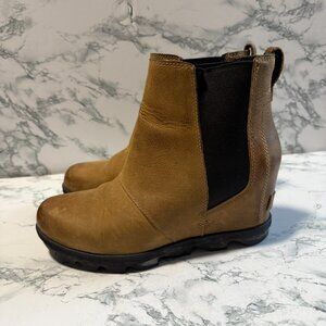 Sorel Women 7.5 Joan of Arctic Boot Tan Hidden Wedge Burnished Leather Chelsea