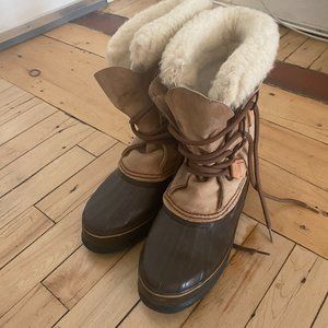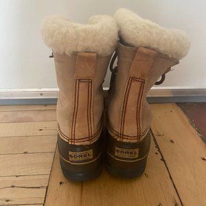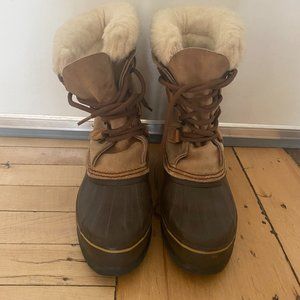 Sorel Women Alpine Tan Brown Leather Lace Up Mid Calf Winter Boots Sz 8