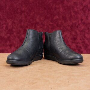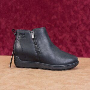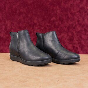 Sorel Women Black Leather Zip Short Spring Evie II Ankle Boots sz 9.5