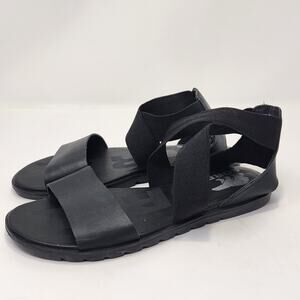 Sorel Women Ella Sandals Black Leather Size 6.5 Gladiator Stretch Straps Flats