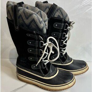 Sorel Women Joan Of Arctic Knit Winter Waterproof Boots Black Size 7