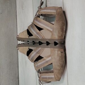 Sorel Women Joanie II Ankle Leather Lace Up Wedge Sandals shoes sz 9