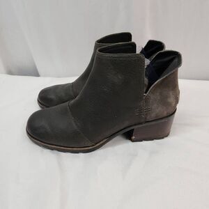 Sorel Women Size 8.5 Cate Cutout Black Leather Waterproof Bootie Boots