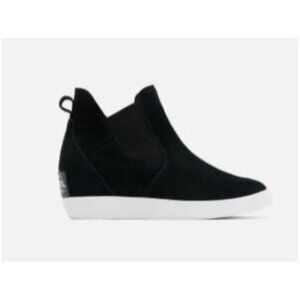 Sorel Women's 5 Out N About Slip-On Wedge Bootie Black White Waterproof size 8
