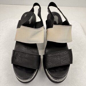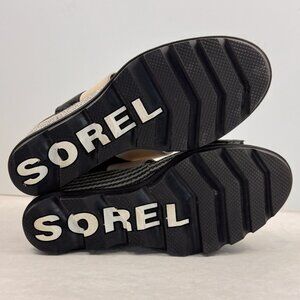 Sorel Womens 7.5 Wedge Sandals Black Beige Strappy Joanie II Slingback Chevron