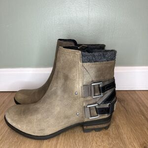 Sorel Women's 8 Lolla Buckle Ankle Snow Boots Zip Flat Brown Waterproof