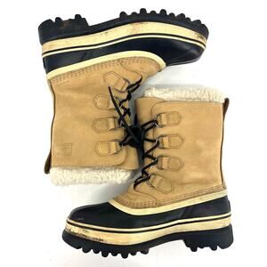 Sorel Women's 9 Cream Leather Caribou Waterproof Winter Lined Insulated Boots