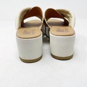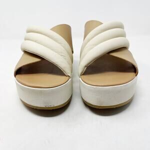 Sorel Womens 9.5 Chalk Honest Beige Cameron Flatform Puff Mule Sandal Leather