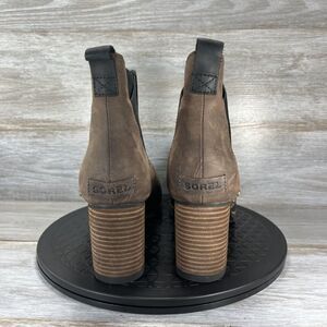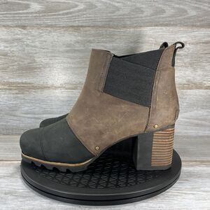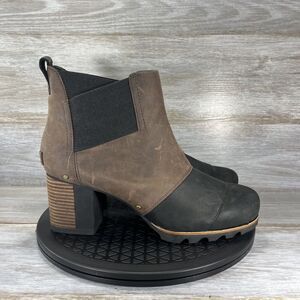 Sorel Women's Addington Black Brown Leather Heeled Ankle Chelsea Boots Size 11