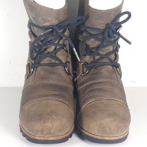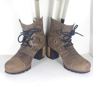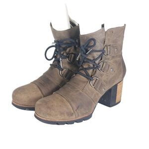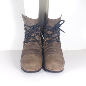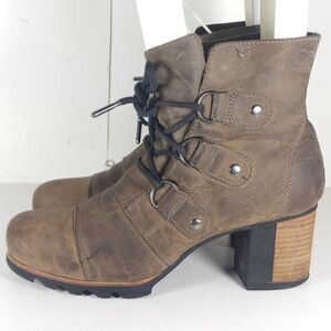 Sorel Women's Addington US10 Brown Leather Lace-up Heels Ankle Boots Booties .
