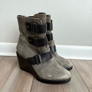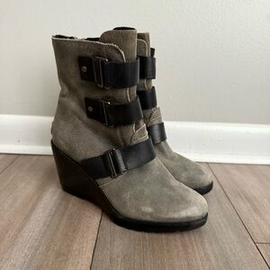 Sorel Women’s After Hours leather wedge belt boots grey black size 7