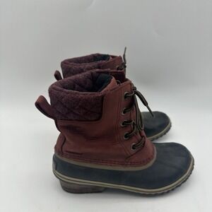 Sorel Women's Ankle Duck Boots Leather Rubber Waterproof Size 7 Red & Black