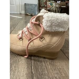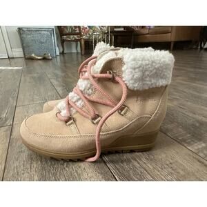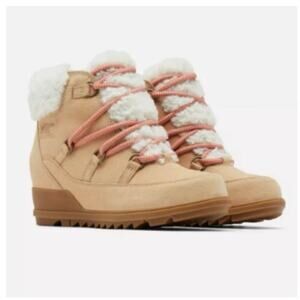 Sorel Women's Beige White Evie Cozy Suede Round Toe Lace Up Boots Size 7.5