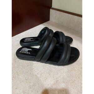Sorel Womens Black Ella Puff II Padded Slide Sandals Size 8 Comfortable & Stylis