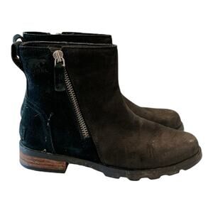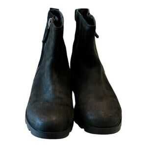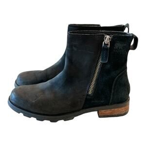 Sorel Women's Black Emelie Leather Side Zipper Ankle Boots Size 5