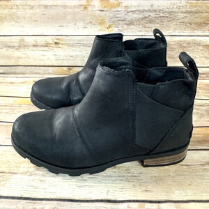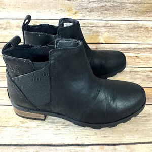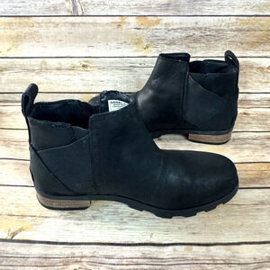 Sorel Womens Black Emelie Waterproof Leather Chelsea Boots Size 7