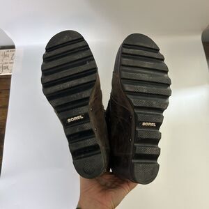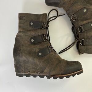 Sorel Womens Bootie Size 10 Dark Brown Joan Of Arctic Leather Wedge Boot Lace Up Wedges