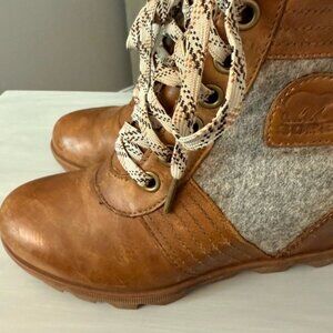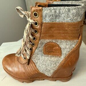 Sorel Women’s Boots Lexie Wedge Camel Brown Gray Size 7.5