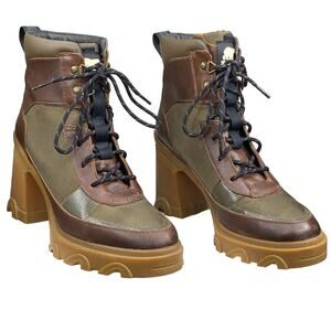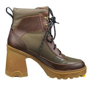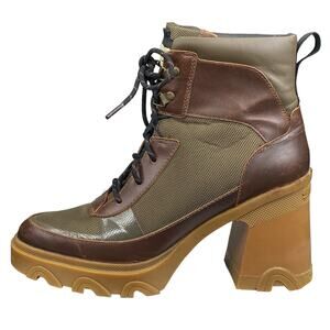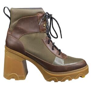 Sorel Women's Brex Waterproof Brown Leather Chunky Heel Boot Size US 9.5