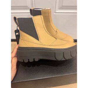 Sorel Womens Caribou X Boot Chelsea WP 6.5 Waterproof Tan/Black Leather Rubber S