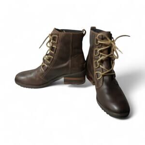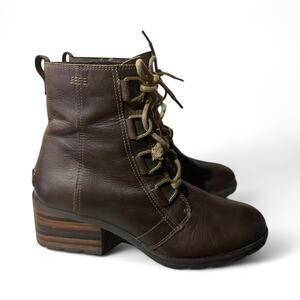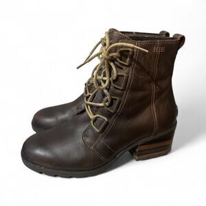 Sorel Women's Cate Lace Up Heeled Leather Boots Sz 11 Dark Brown