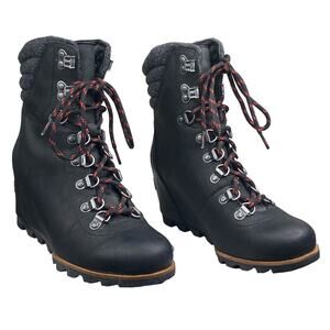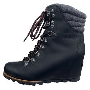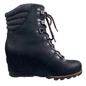 Sorel Women’s Conquest Black Leather Waterproof Wedge Bootie Size US 7.5