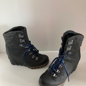 Sorel Women’s Conquest Lace-Up Wedge Booties Leather & Wool Ankle Boots 7 EUC