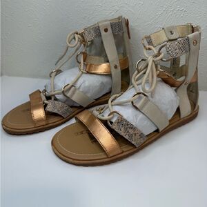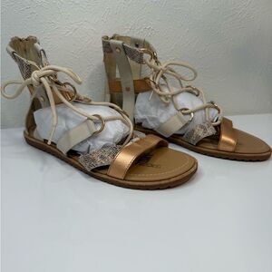 SOREL Gladiator Sandals ELLA Womens 8 Natural Lace up Flats