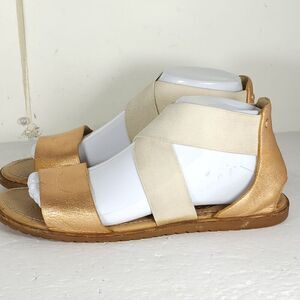 Sorel Women's Ella US8 Natural Rose Gold Leather Crisscross Strap Flat Sandals