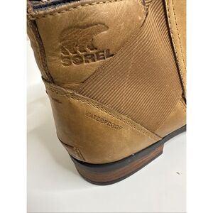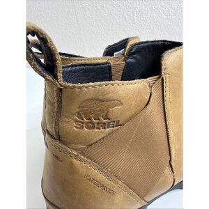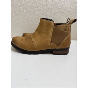 Sorel Women's Emelie Chelsea Boot Waterproof Light Leather Brown size 10.5 Women In good gently used conditionA few scratches on the leather. Please see the pictures for details