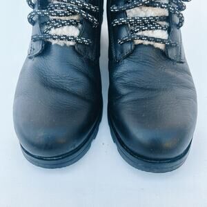 Sorel Women’s Emelie Lace Up Ankle Boots Black Leather Cozy 8 Shearling Winter