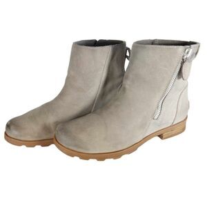 Sorel Women’s Emilie II US 8,5 Gray Leather Side Zip Ankle Boots Booties.